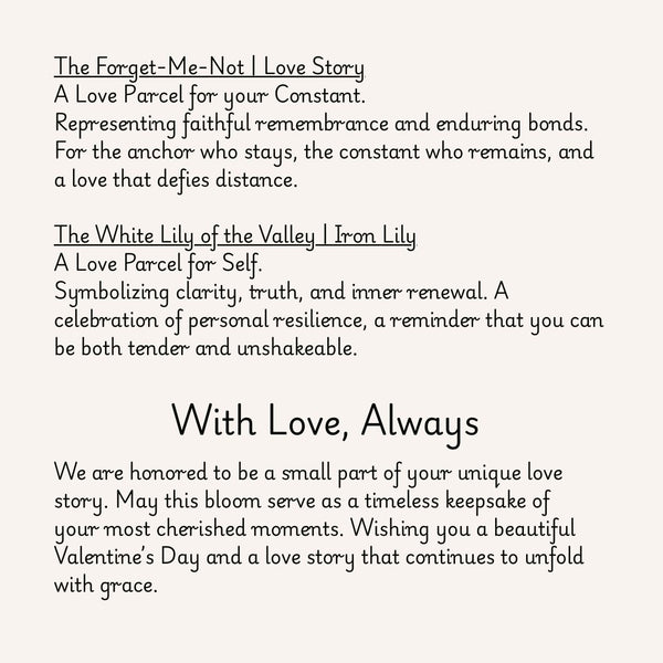 The Love Story Bracelet is dedicated to "The Constant": the person who has remained by your side through every season, every distance, and every test of time. Inspired by the forget-me-not, a flower long associated with remembrance and enduring bonds, this piece honors a love that doesn’t fade with distance. It is the perfect gift for someone who feels like home, even from afar.